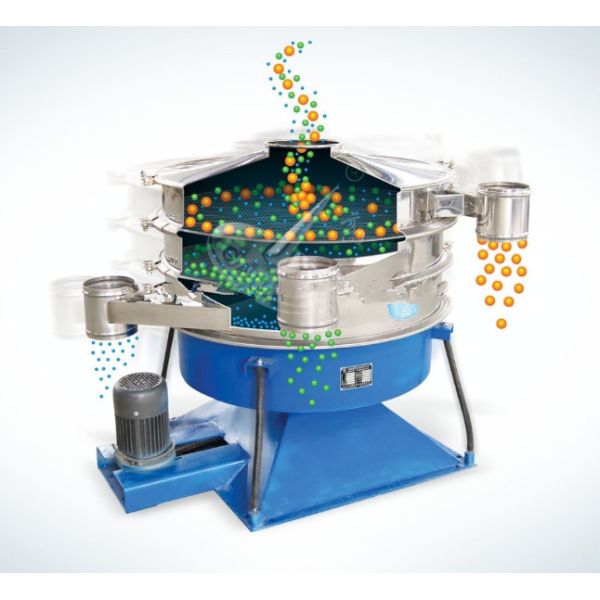 Rotary Vibrating Screen is a high-precision powder griddle, low noise, high efficiency, quick changer takes 3-5 minutes, totally enclosed structure, for grain, flour, mucus and other materials screening filter. Rotary Vibrating Screen is a motor for vertical excitation source, the motor and lower eccentric weight installed at both ends of the motor rotary motion into a horizontal, vertical, inclined three elementary motions, then the movement passed to the screen surface . Adjust the upper and lower ends of the phase angle, the material can change the trajectory of the screen surface.